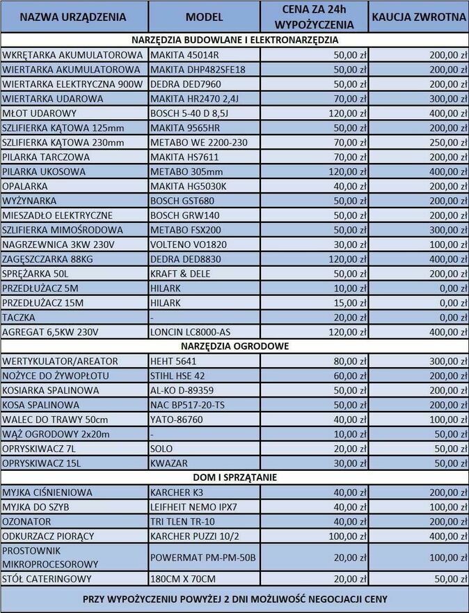 Wypożyczalnia narzędzi i sprzętu ogrodniczego – ZbąszynekZapraszamy do skorzystania z naszej oferty.